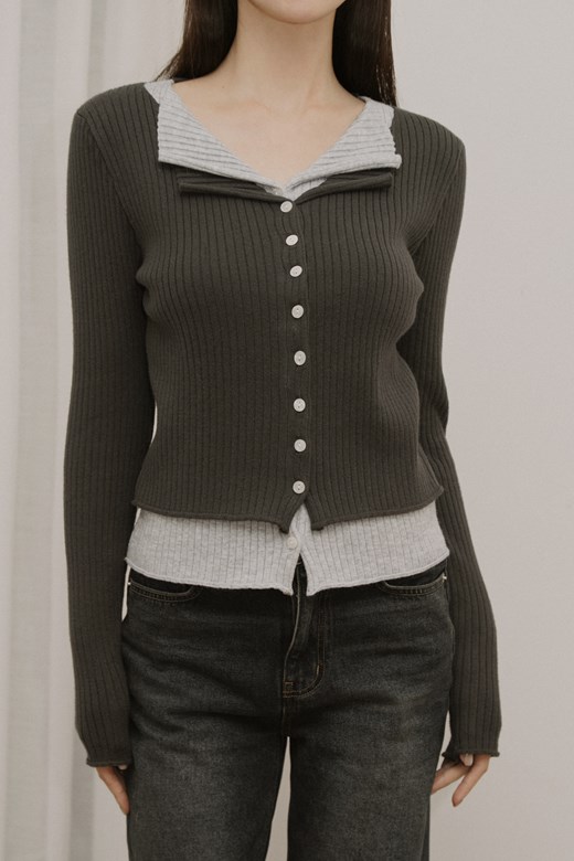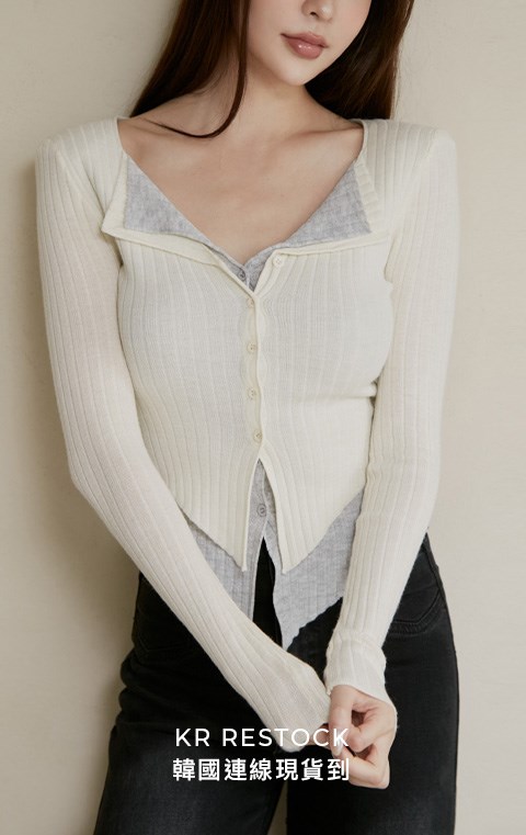 假兩件排釦針織長袖上衣