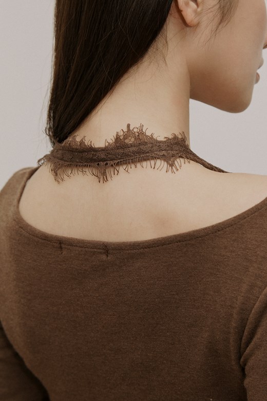 蕾絲繞脖假兩件長袖上衣