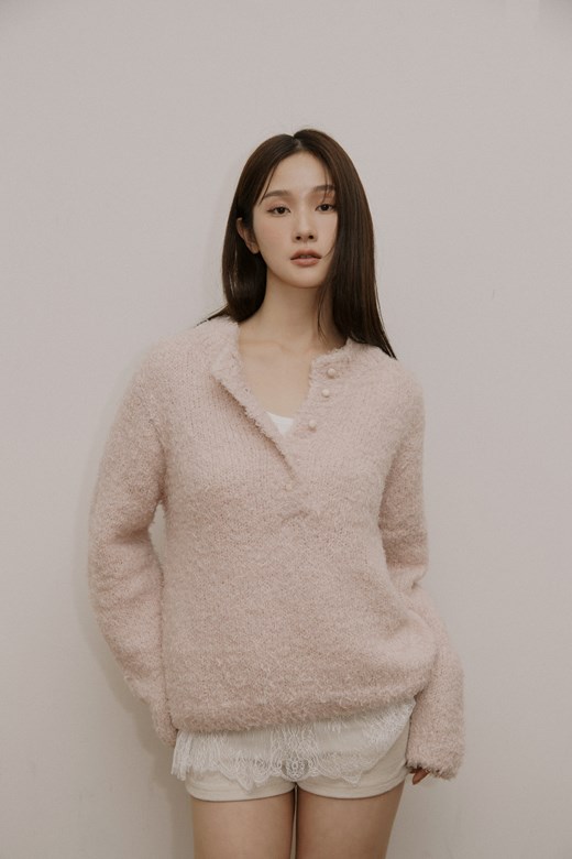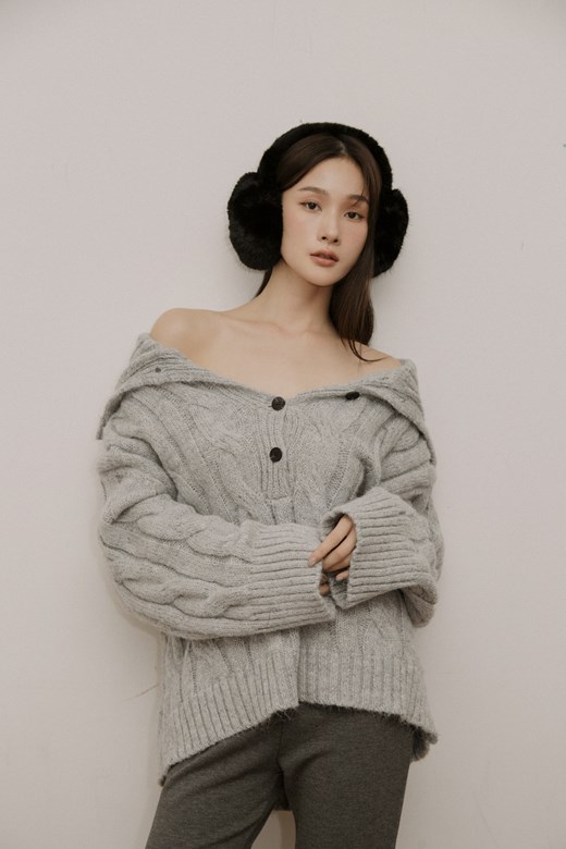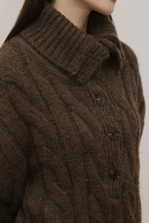 翻領麻花排釦毛衣
