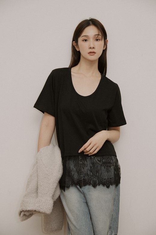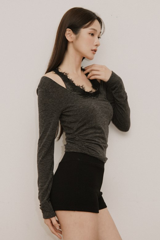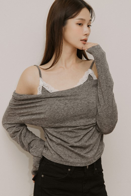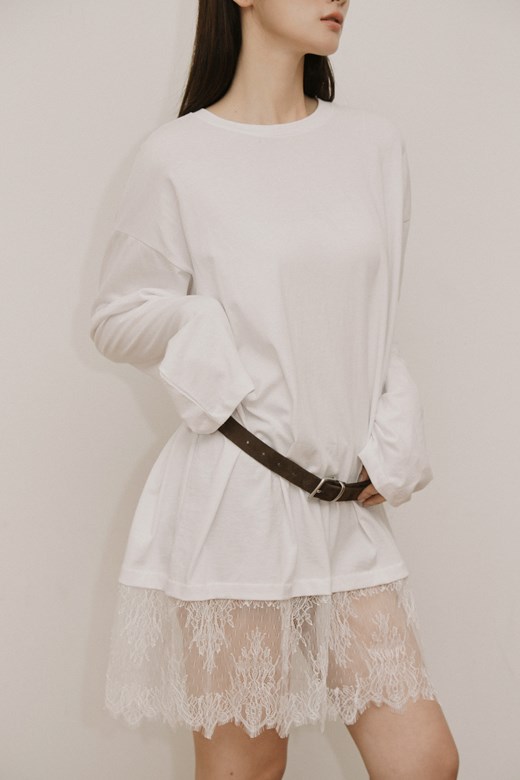 垂墜蕾絲假兩件長袖上衣