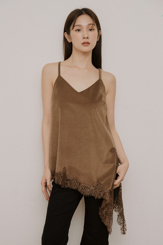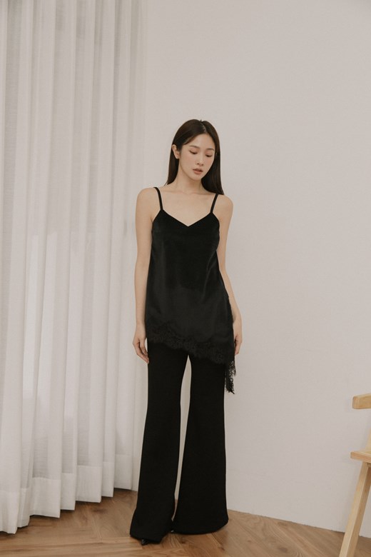 絲滑感蕾絲下擺細肩背心