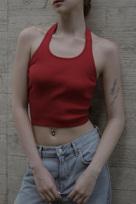 瘦慘啦繞頸針織背心