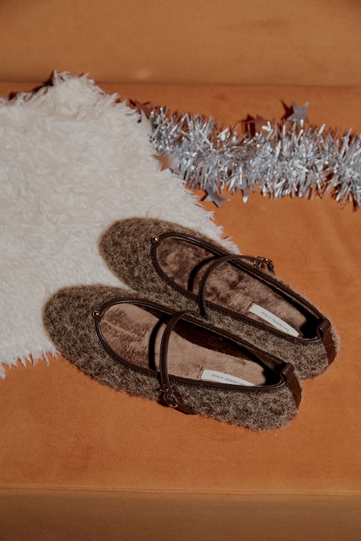 小女孩圓頭珍珠羊羔毛平底娃娃鞋