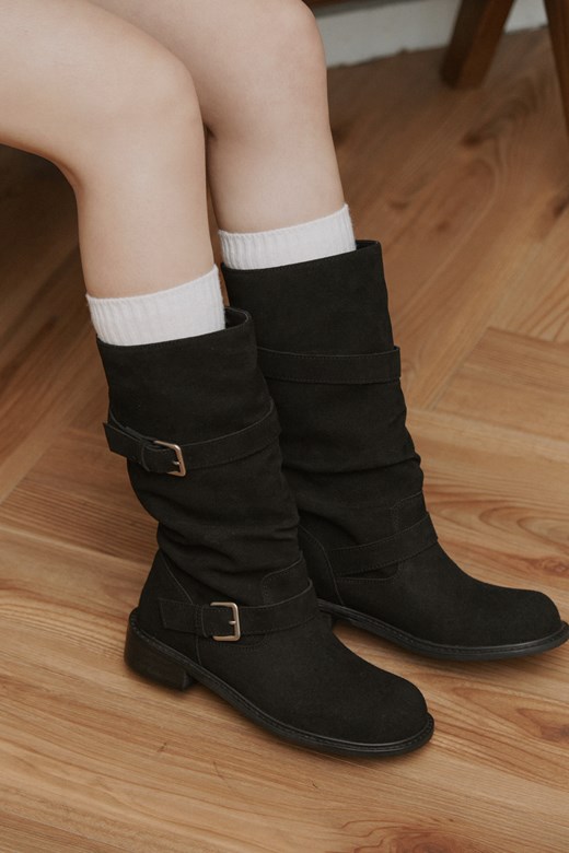 27 麂皮雙扣環長筒靴