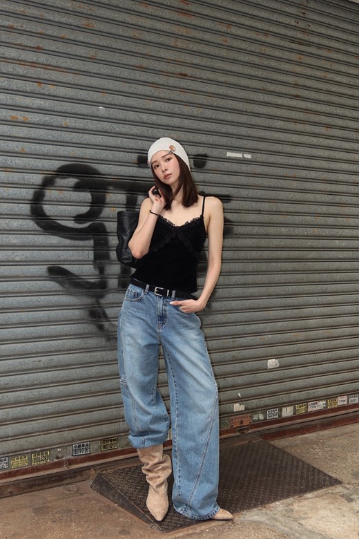刷色百搭牛仔寬褲