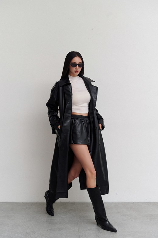 俐落氣場長版皮衣外套(附綁帶)