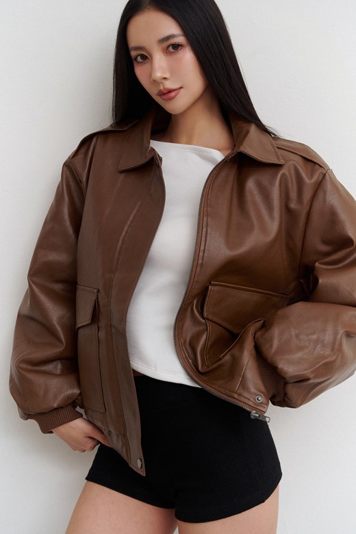 滿分好率性鋪棉皮衣外套