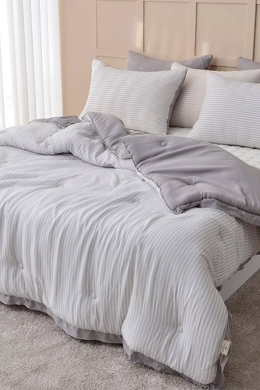 典雅花漾/條紋絨毛雙面冬被(Q)