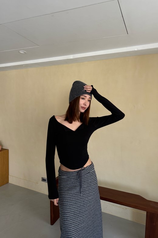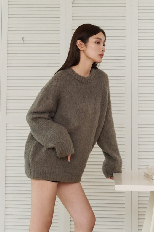 柔膚毛感圓領長袖上衣