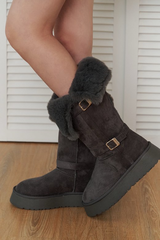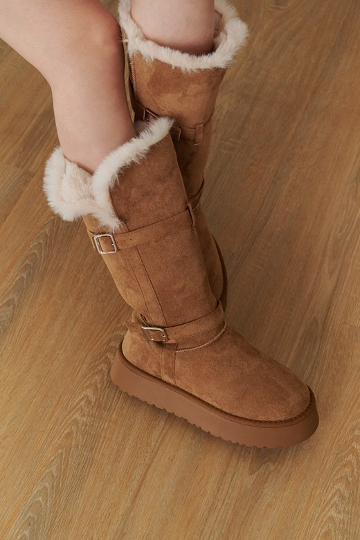雙釦環厚底刷毛長靴