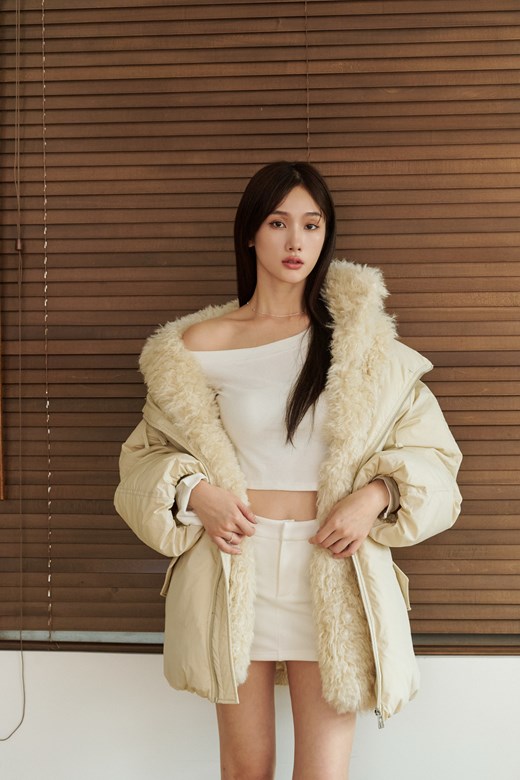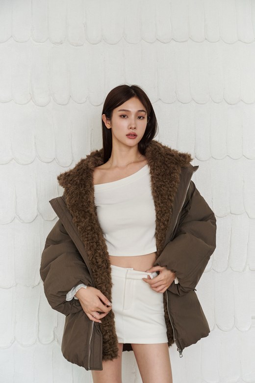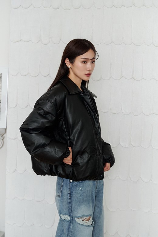 皮革澎澎羽絨外套(100%鴨絨)