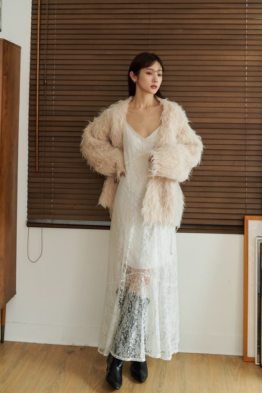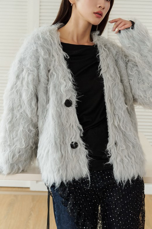 綿羊毛造型開襟外套