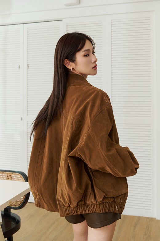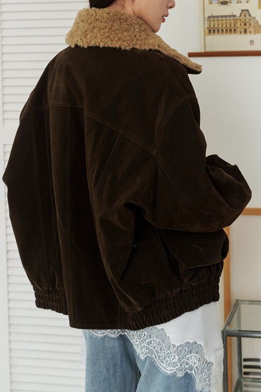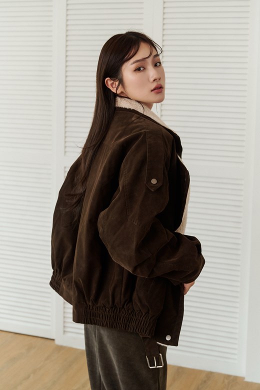 羊羔領麂皮工裝短版外套