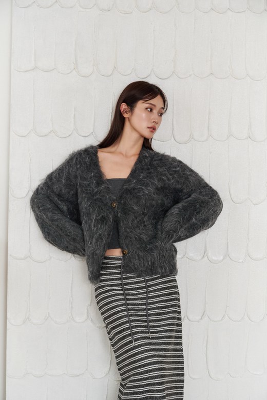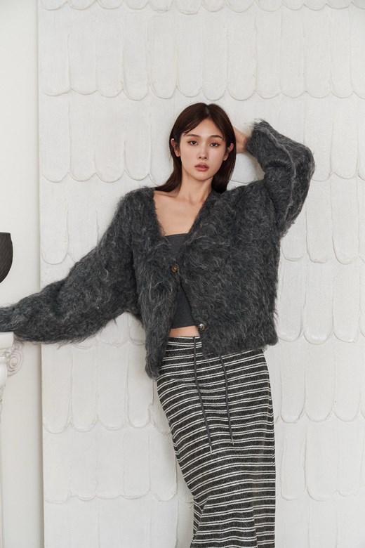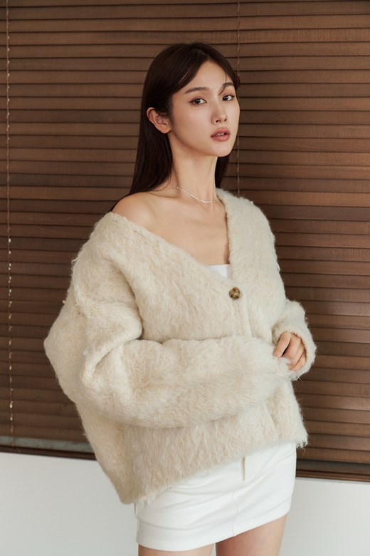 捲毛V領排釦外套