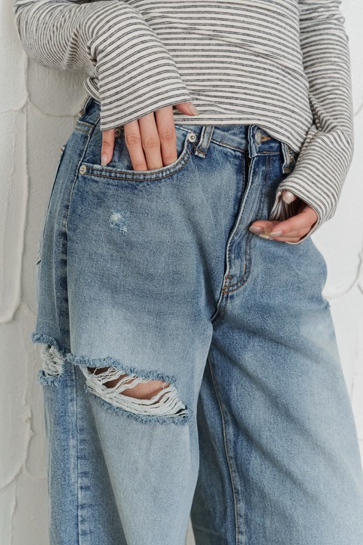 復古刷破直筒牛仔褲