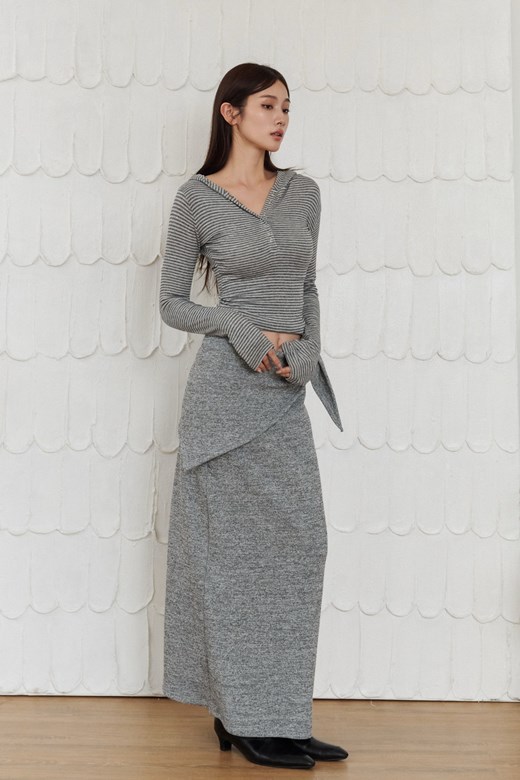 絨毛條紋綁帶長裙