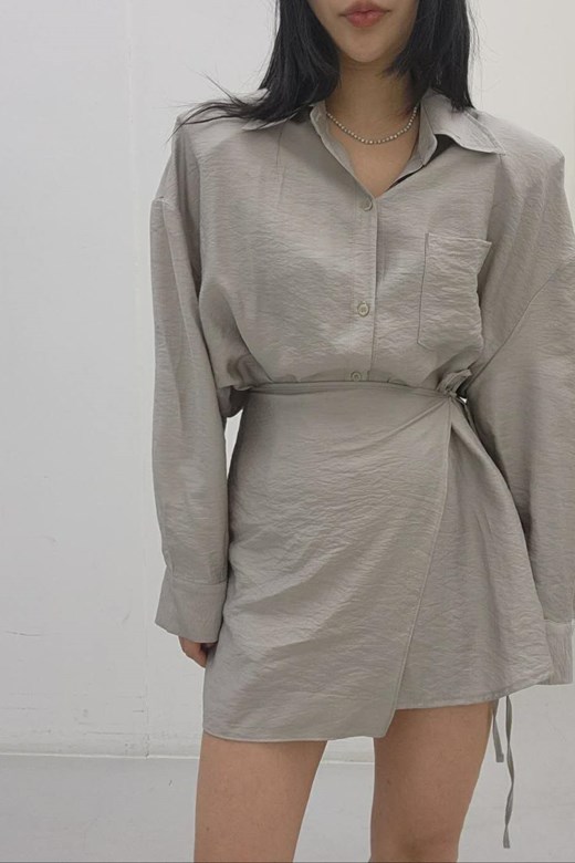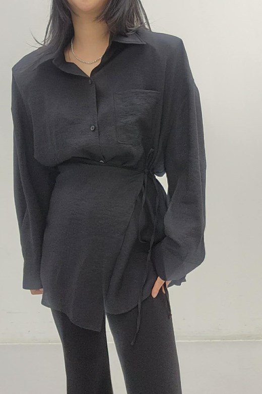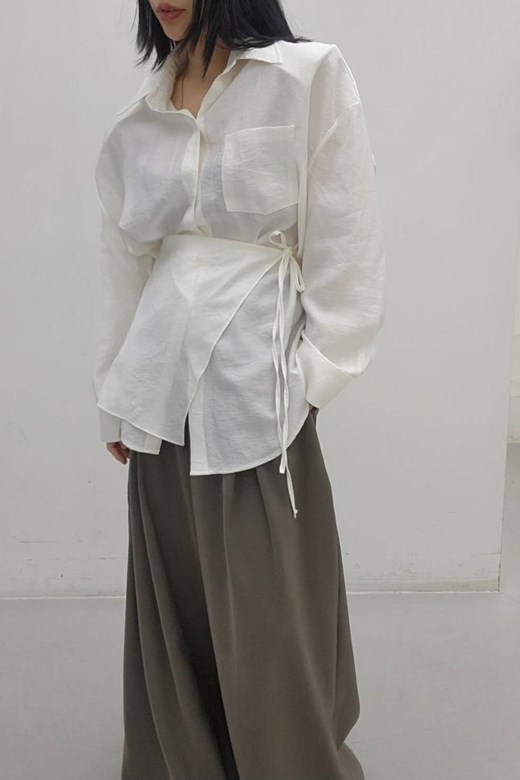 柔霧棉麻綁帶襯衫+造型綁巾組