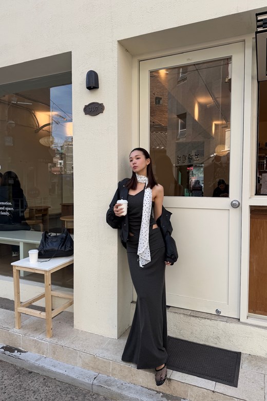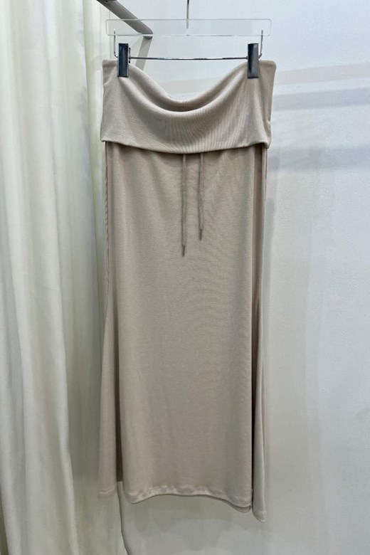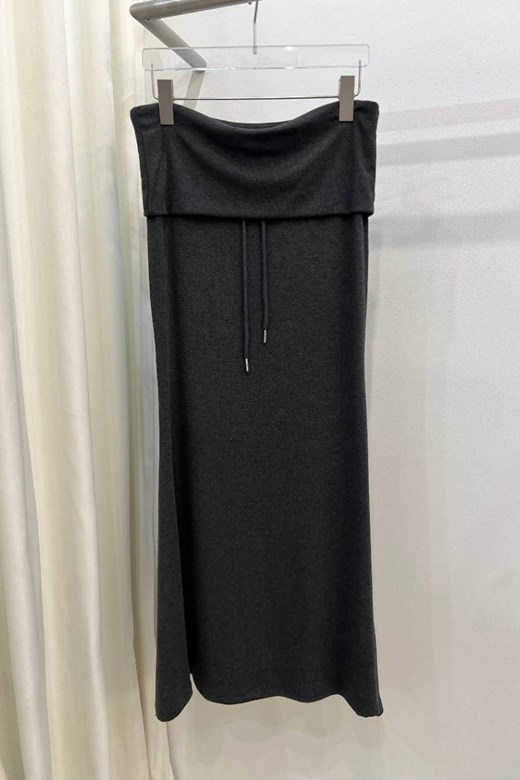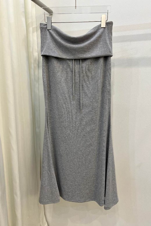 腰頭反折抽繩層次長裙